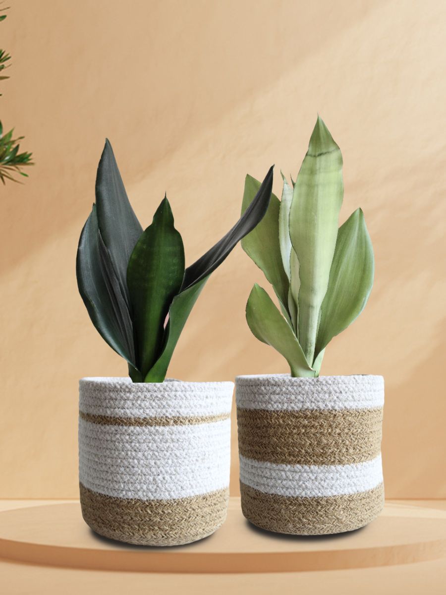 About Low Maintenance Black n White Snake Plants Duo